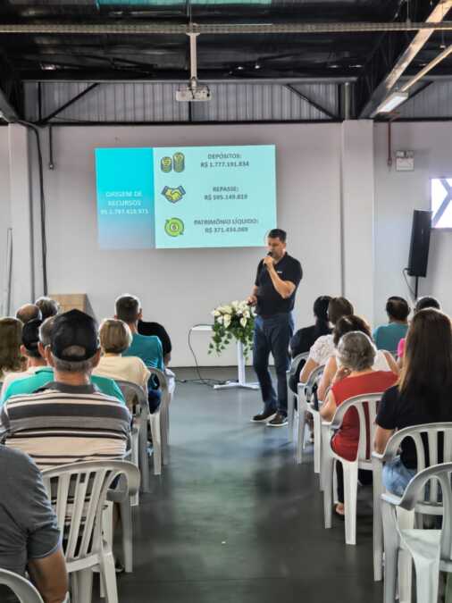 O encontro iniciou às 9h30 da manhã e foi realizado no Centro de Convivência dos Idosos do município, ao lado da Prefeitura, reunindo cooperados para acompanhar de perto as informações apresentadas pela cooperativa.